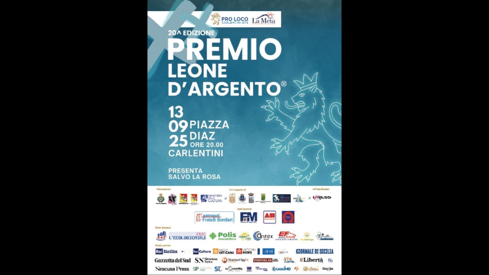 A Carlentini la XX edizione del "Leone d'argento, in programma il prossimo 13 settembre